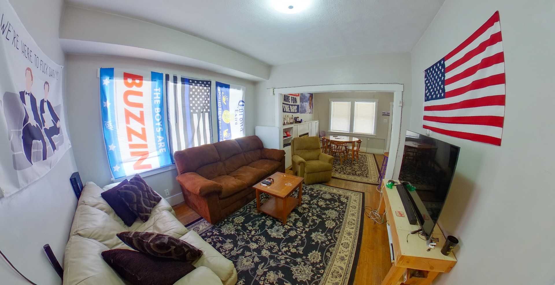 The main floor unit features a living area with two open rooms and a fireplace. There are 3 bedrooms, a huge upstairs loft bedroom, and two full bathrooms. Washer & Dryer included! Off-street parking is available. Pet friendly.