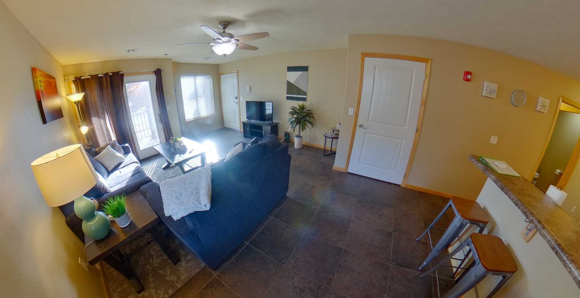 This apartment features a large living room perfect for entertaining guests. The kitchen features a refrigerator, dishwasher, stove, microwave, and bar. The bathroom features a double vanity then further down the hall is the washer and dryer, at the end of the hall are the two bedrooms. This apartment has a balcony, is close to Aggieville, and Kansas State University Campus.